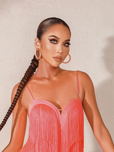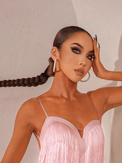 Latin Dance Mesh Long-sleeved Fringed Dress Summer Practice Clothes