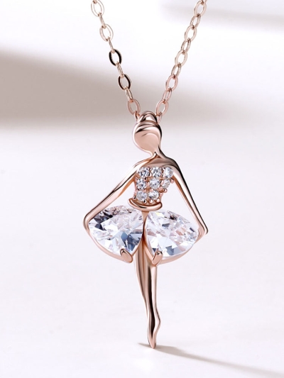 Ballerina Sterling Silver Necklace Clavicle Chain Pendant