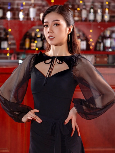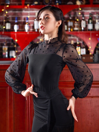 Latin Dance Mesh Long-sleeved Leotard Black Practice Clothes
